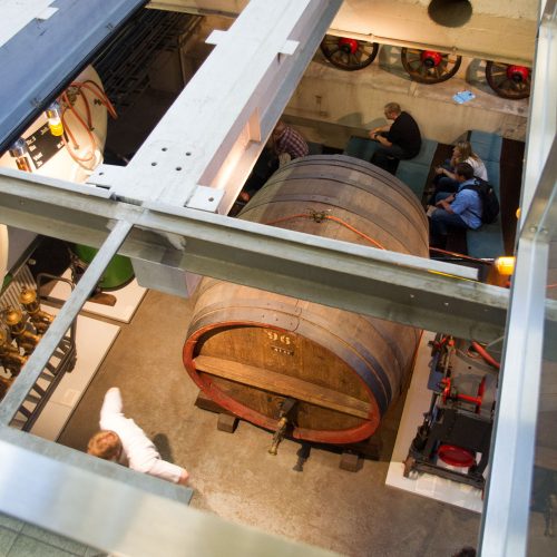 Die Ausstellung zeigt die industrie- und stadtgeschichtlichen Entwicklungen, beleuchtet die Fortschritte des industriellen Brauens und veranschaulicht die stetige Verfeinerung der Produktionsprozesse. Außerdem präsentiert das Museum eine moderne Kulturgeschichte des Bieres. Viele der Exponate scheinen von den Arbeitern gerade erst verlassen worden zu sein. Bereits im Eingangsbereich des Museums können Sie die große Dampfmaschine bestaunen. Abfüll- und Flaschenreinigungsautomaten aus den 1950er Jahren gibt es ebenso wie Etikettiermaschinen, riesige Fässer und Kronkorkenverschlussmaschinen. Besonders beliebt bei allen Besuchern sind die Theke mit Zapfsäule und Rückbüffettiere aus den 1920er Jahren sowie auch der Krupp’sche Lastwagen von 1922, von dem insgesamt nur 20 Exemplare gebaut wurden.